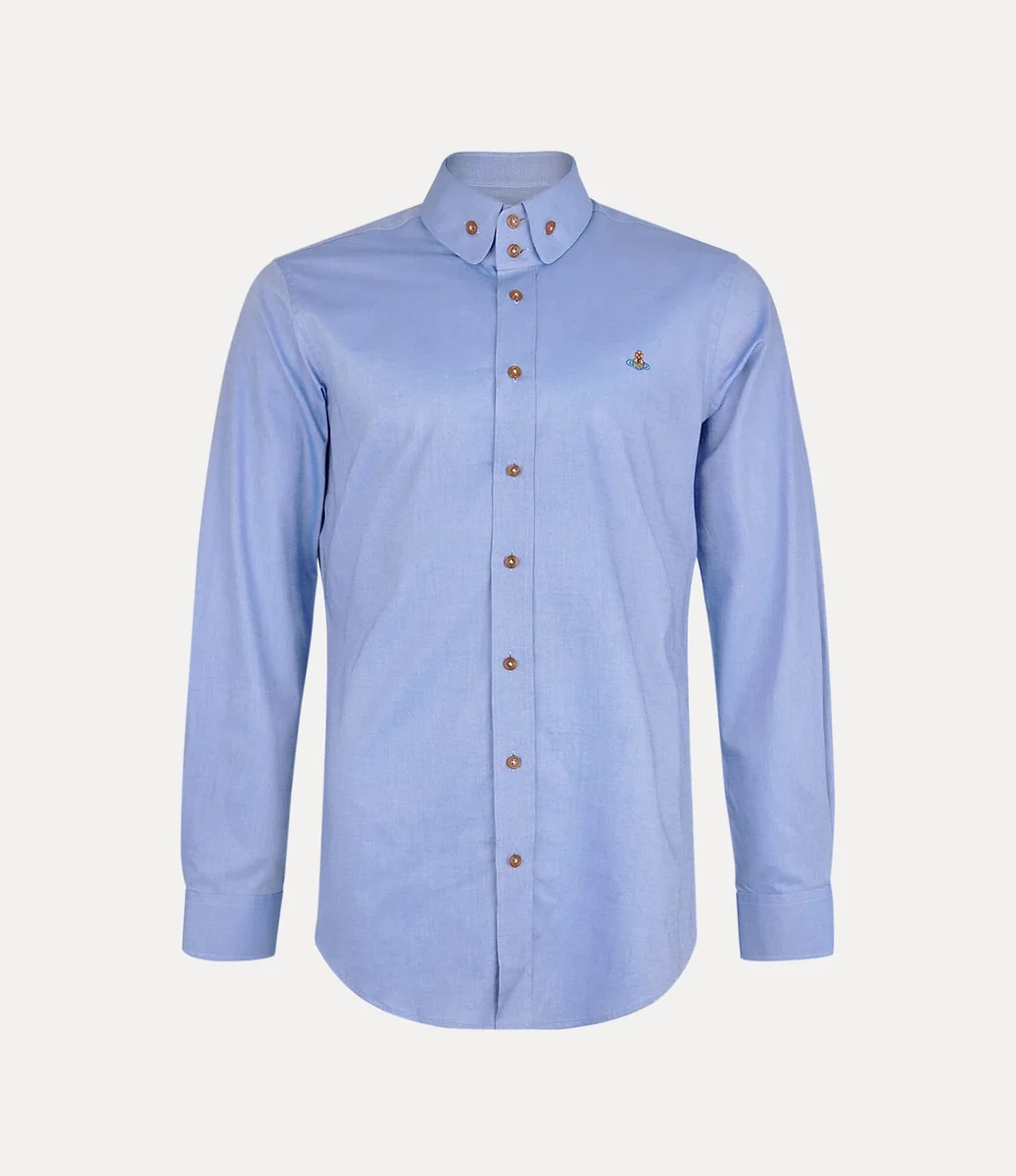 Košile Vivienne Westwood Two Button Krall má dlouhé rukávy a výstřih se dvěma knoflíky, doplněný zaobleným límcem a lemem.
