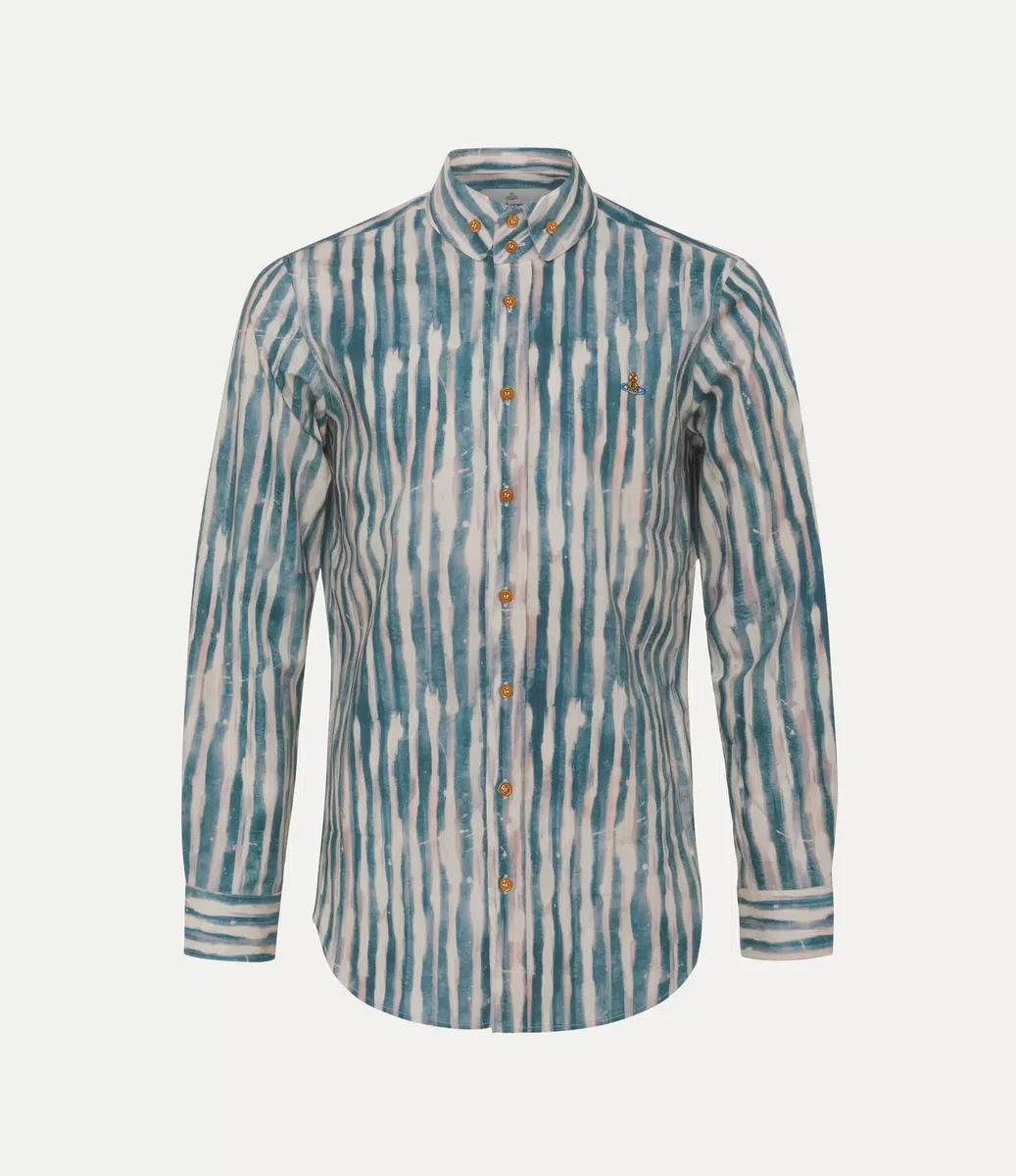 Bavlněná košile Vivienne Westwood Two Button Krall má charakteristický dvouknoflíkový límec značky a je zdobena hrubými ručně malovanými tahy štětcem.