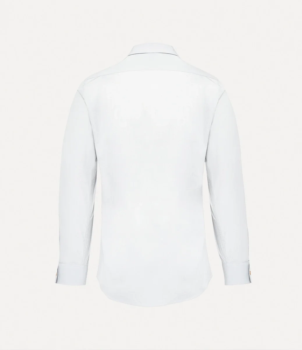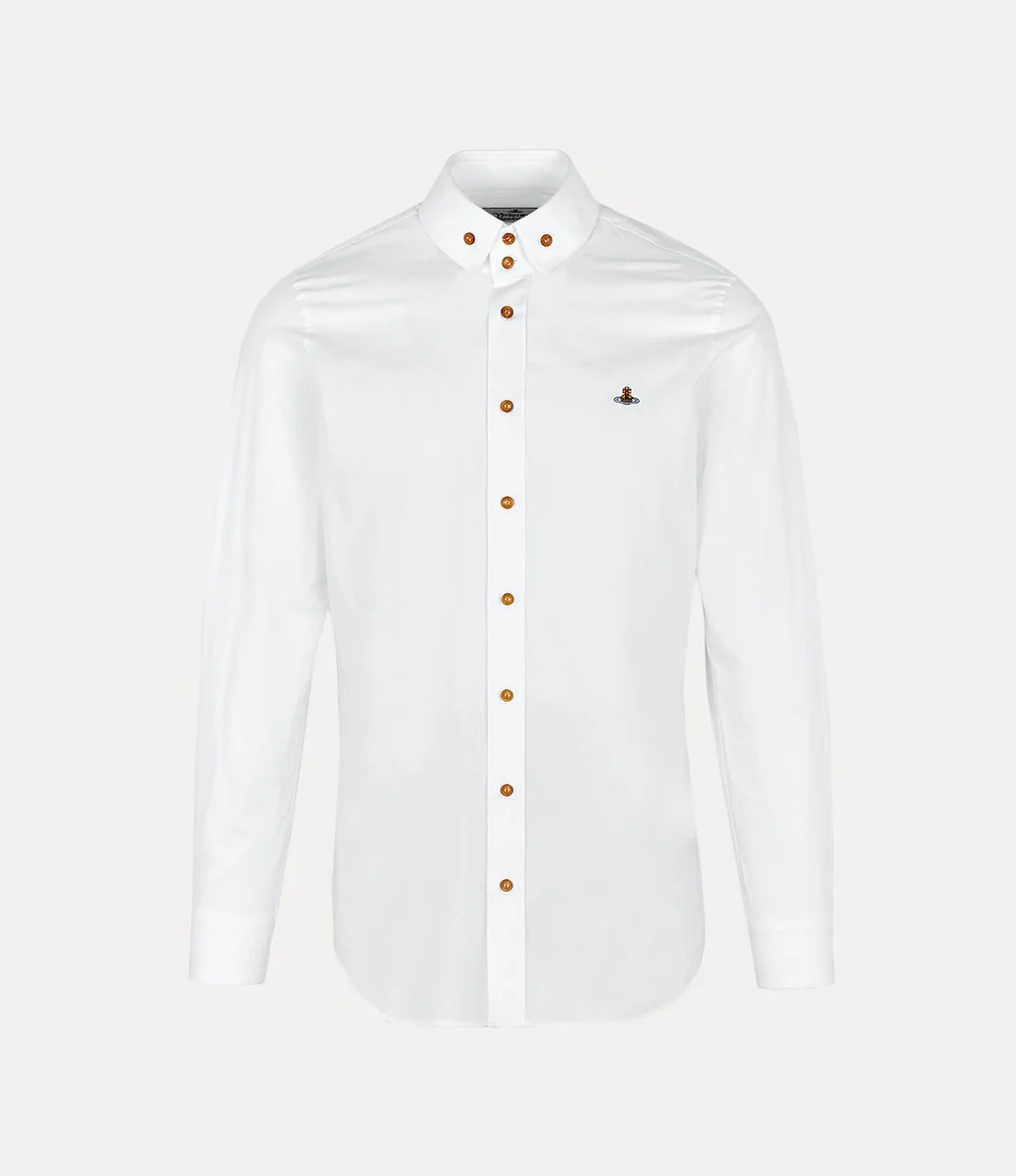 Silueta košile Two Button Krall čerpá inspiraci z archívního designu a je zdobena ikonickým límcem se dvěma knoflíky od Vivienne. Na levé straně hrudníku je vyšívaný náš charakteristický symbol koule, který je synonymem pro vizi Vivienne přenést tradici do budoucnosti.