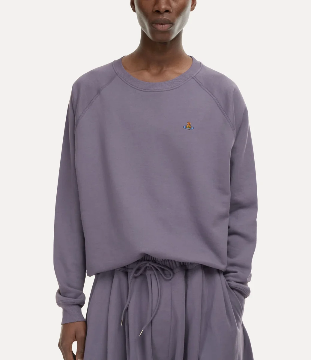 Naše mikina Raglan byla v této sezóně obnovena, je nabízena v měkkém bavlněném provedení a zdobena vícebarevným motivem koule na levé straně hrudníku – synonymem pro vizi Vivienne přenést tradici do budoucnosti. Kousek má kulatý výstřih a dlouhé raglánové rukávy s žebrovanými manžetami.