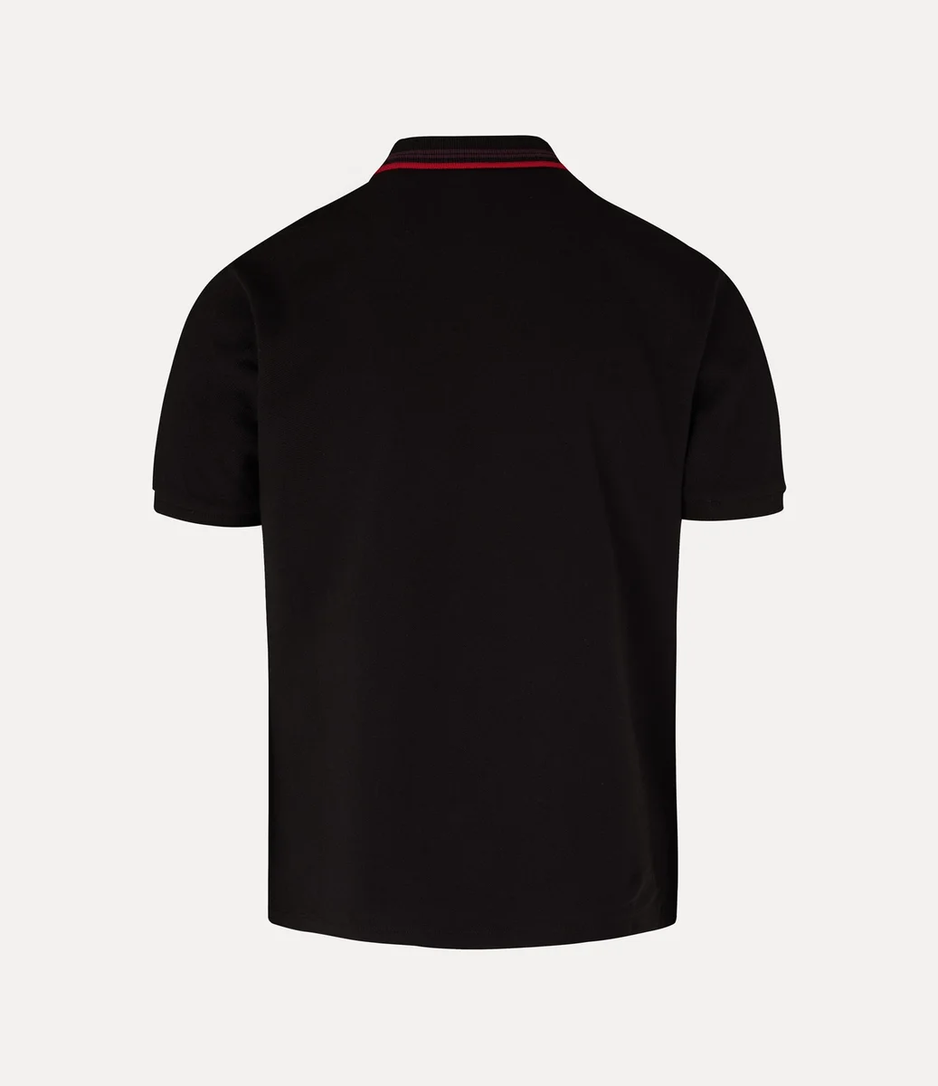Naše klasické polo tričko bylo v této sezóně přepracováno a doplněno lesklými perleťovými knoflíky a pruhovanými detaily na límci. Je vyrobeno z měkké bavlny a na levé straně hrudníku má vyšívaný motiv koule, který symbolizuje tradici, obklopený nebeskými prstenci Saturnu, které představují budoucnost.