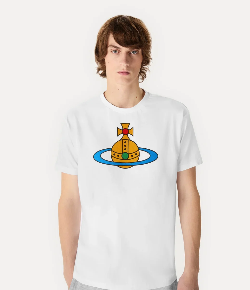 Naše oversized tričko Orb Classic je vyrobeno z lehké bavlny, má kulatý výstřih, krátké rukávy a rovný lem. Na hrudi je potištěno vícebarevným motivem koule, který symbolizuje vizi Vivienne Westwoodové o přenesení tradice do budoucnosti.