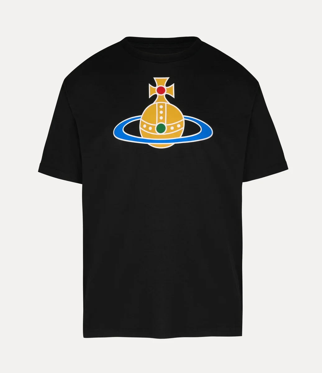 Naše oversized tričko Orb Classic je vyrobeno z lehké bavlny, má kulatý výstřih, krátké rukávy a rovný lem. Na hrudi je potištěno vícebarevným motivem koule, který symbolizuje vizi Vivienne, jak přenést tradici do budoucnosti.