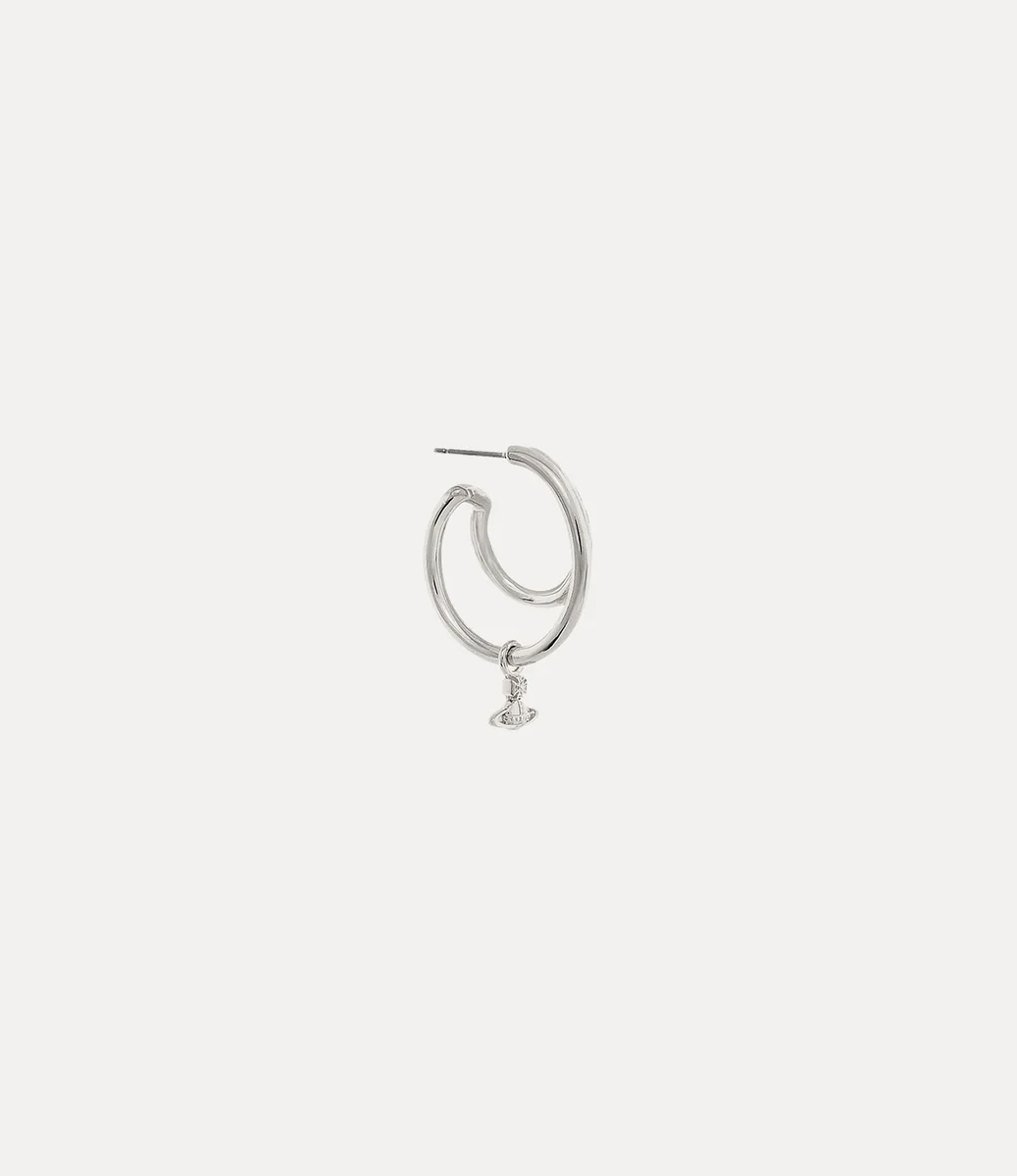 Náušnice Man. Ronda Single mají siluetu dvojitého kruhu, která vytváří iluzi více piercingů. Styl nabízí leštěný stříbrný povrch, který je zdůrazněn visícím motivem koule, který elegantně sedí mezi kruhy.
